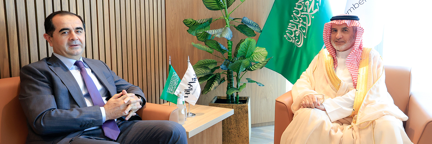 The Chairman of the Board, Eng. Abdullah Al-Obeikan, discussed with the Ambassador of the Republic of Tajikistan to the Kingdom, Mr. Akram Karimi, avenues of joint cooperation between the business sectors in both countries, and ways to strengthen communication among business leaders, in a manner that supports expanding trade and investment partnerships.